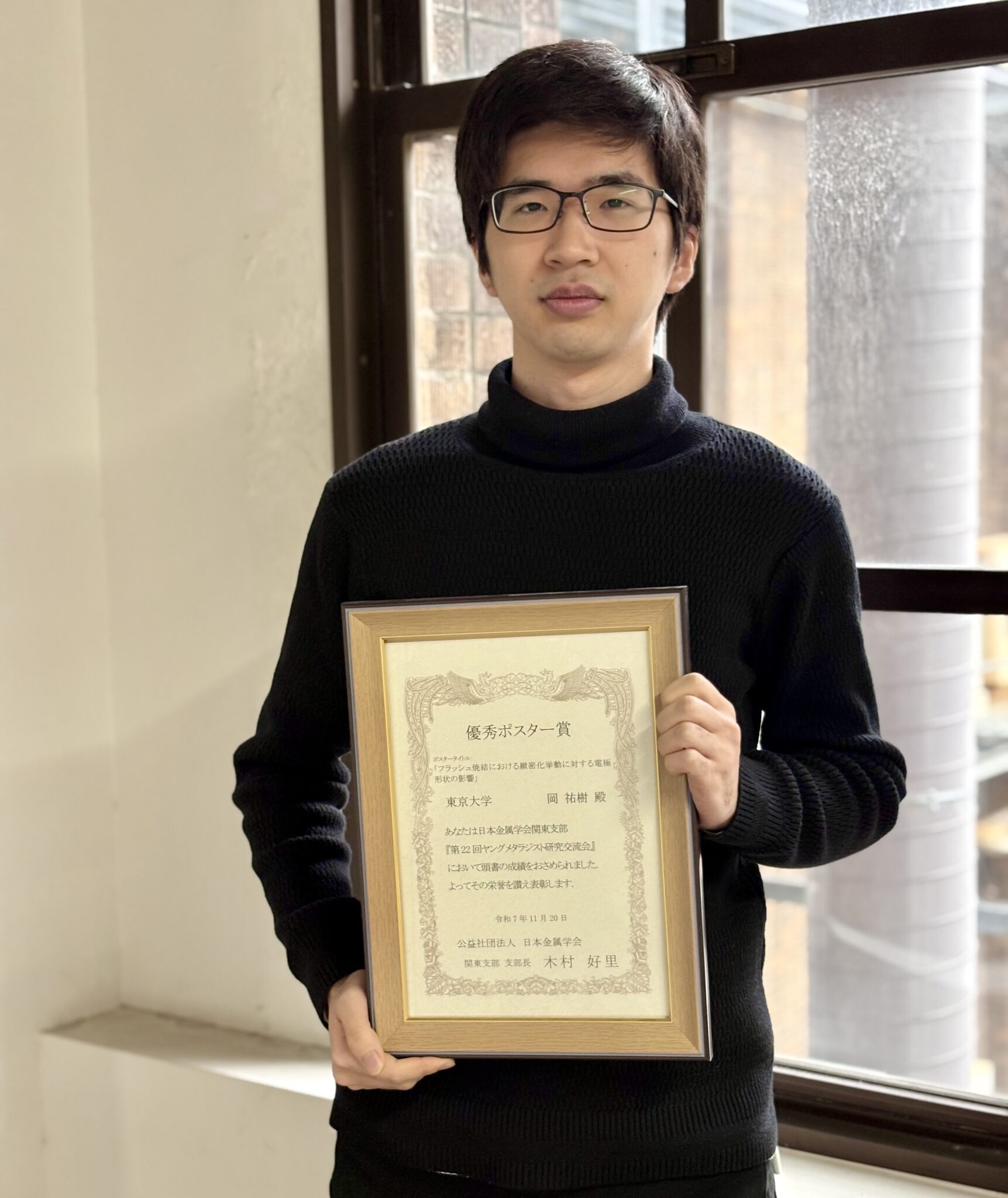 岡祐樹さん(M1)が、日本金属学会関東支部第22回ヤングメタラジスト研究交流会で優秀ポスター賞を受賞しました。